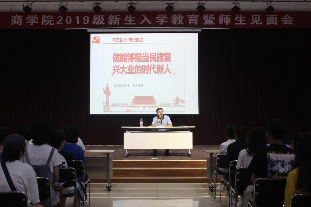 8月26日上午,商公司在老员工活动中心三号厅组织开展了2019级新生思想政治与形势政策教育。马克思主义公司副经理郭建教授主讲,商公司党委副书记侯彦利、新生辅导员及2019级全体新生近500人参加。