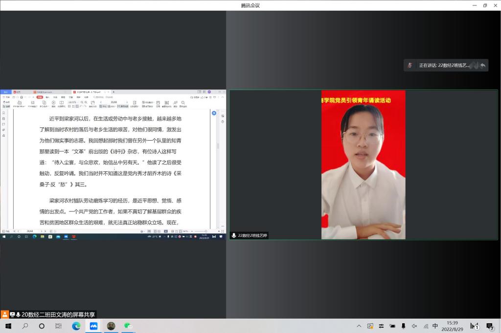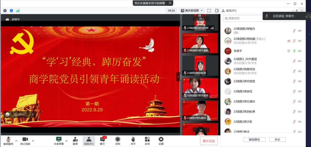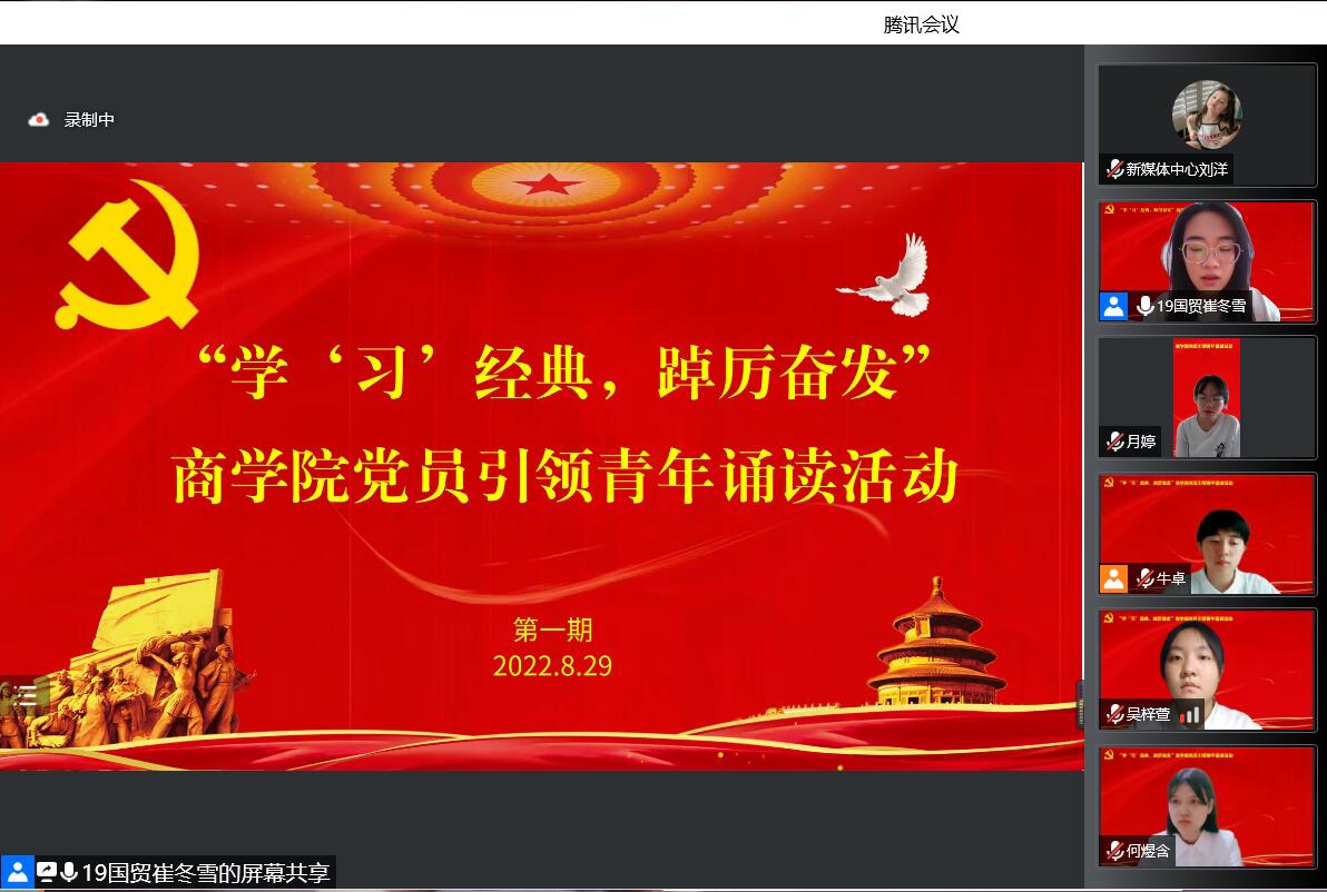 8月29日下午,商公司在线上举办“学‘习’经典,踔厉奋发”党员引领青年诵读活动,公司2022级新生辅导员、10名优秀员工党员代表和2022级全体新生参加了此次活动。