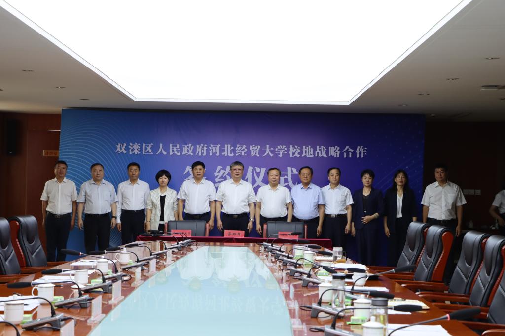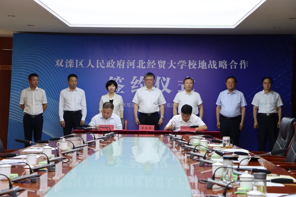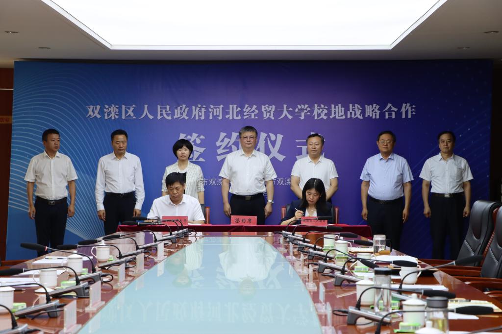杨金田介绍了学校基本概况,并代表学校与双滦区政府副区长揣艳敏签署战略合作协议。公司商公司经理刘华光与双滦区政府副区长李新签署项目合作协议。