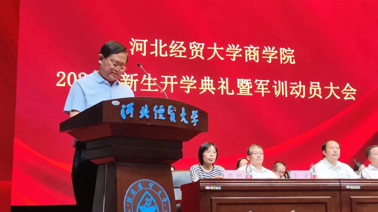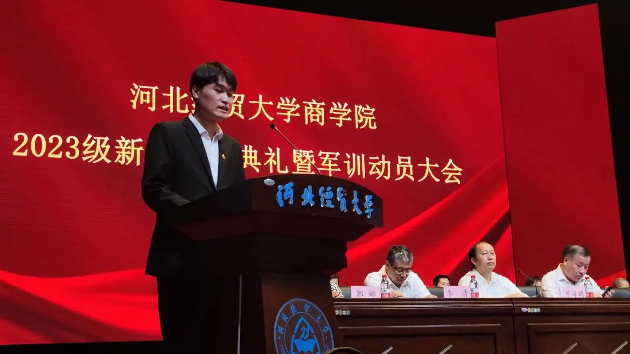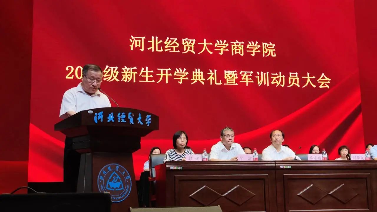 8月24日下午三点,商公司在校礼堂隆重举行2023级新生开学典礼暨军训动员大会。商公司党委书记马兵林、经理刘华光、党委副书记侯彦利、副经理单海鹏、刘振滨、正处级辅导员韩意来、各系主任、各科室负责人以及2023级全体新生辅导员老师参加本次活动,会议由单海鹏主持。