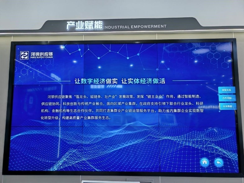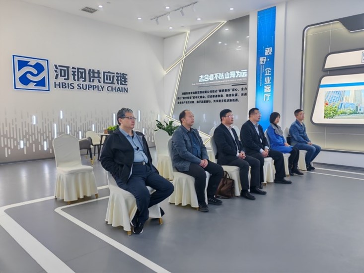 在杨世广总经理的陪同下,公司领导和老师们一同观看了河钢供应链企业宣传片,了解了企业发展历程、企业文化、业务领域和战略规划等。河钢供应链成立于2018年,下辖有财务公司、融资租赁公司、商业保理公司、投资控股公司等类金融公司和铁铁物联、铁铁智运、河钢售电、河北钢铁交易中心等互联网平台公司。肩负着培育壮大集团产业金融板块的使命,以数智化手段赋能传统产业,构建河钢集团金融产业管控平台、产融协同创效平台、转型升级经营平台。
