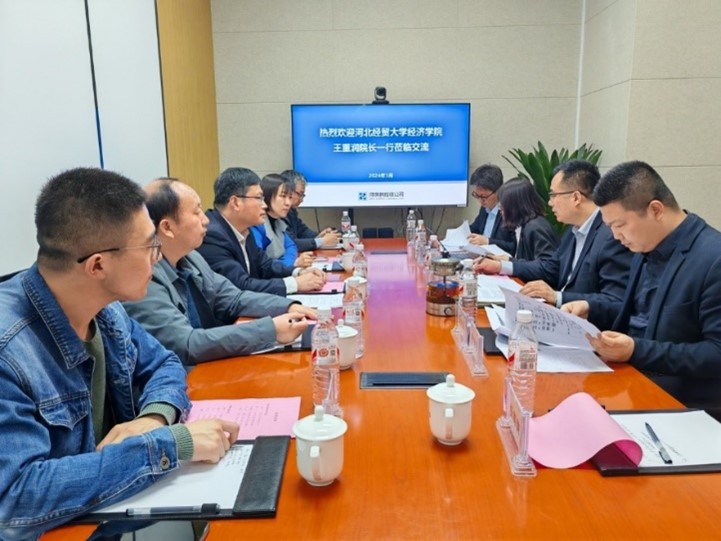 参观结束后,校企双方在会议室进行了深入座谈,王重润介绍了公司的发展历程、专业特色、团队建设、育人成效等情况,侯彦利介绍了公司访企拓岗专项行动的目的,以及员工实习实践、新财经第二课堂开展情况,单海鹏重点介绍了新财经数字经济专业的教学体系和课程设置情况。企业与会领导和负责人分别从企业发展规划、未来发展前景、数据分析方面的人才需求等多个方面做了详细介绍。校企双方在今后如何深度合作展开了热烈讨论,最终在人才培养模式创新开展、校企课题研究项目共建、服务区域经济发展协同合作等方面初步达成合作意向。