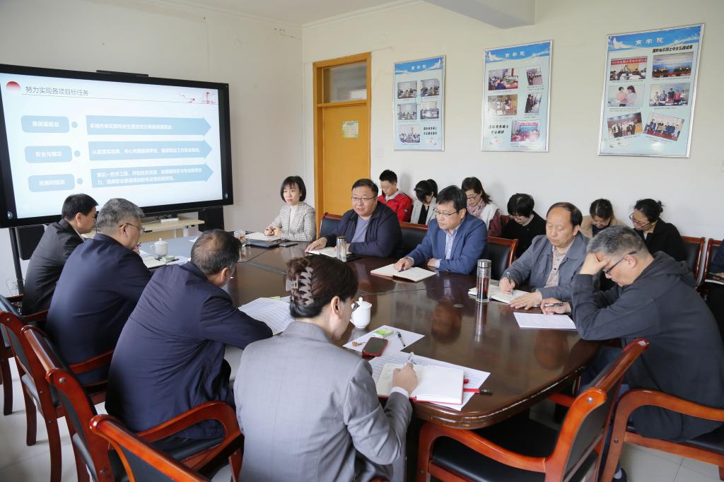 4月10日,公司党委书记刘兵、党委副书记张秀山带领就业指导服务中心负责人到公司调研员工就业与职业愿景引领工作。太阳成城集团班子成员、系主任代表、毕业班全体辅导员参加了本次调研座谈会。