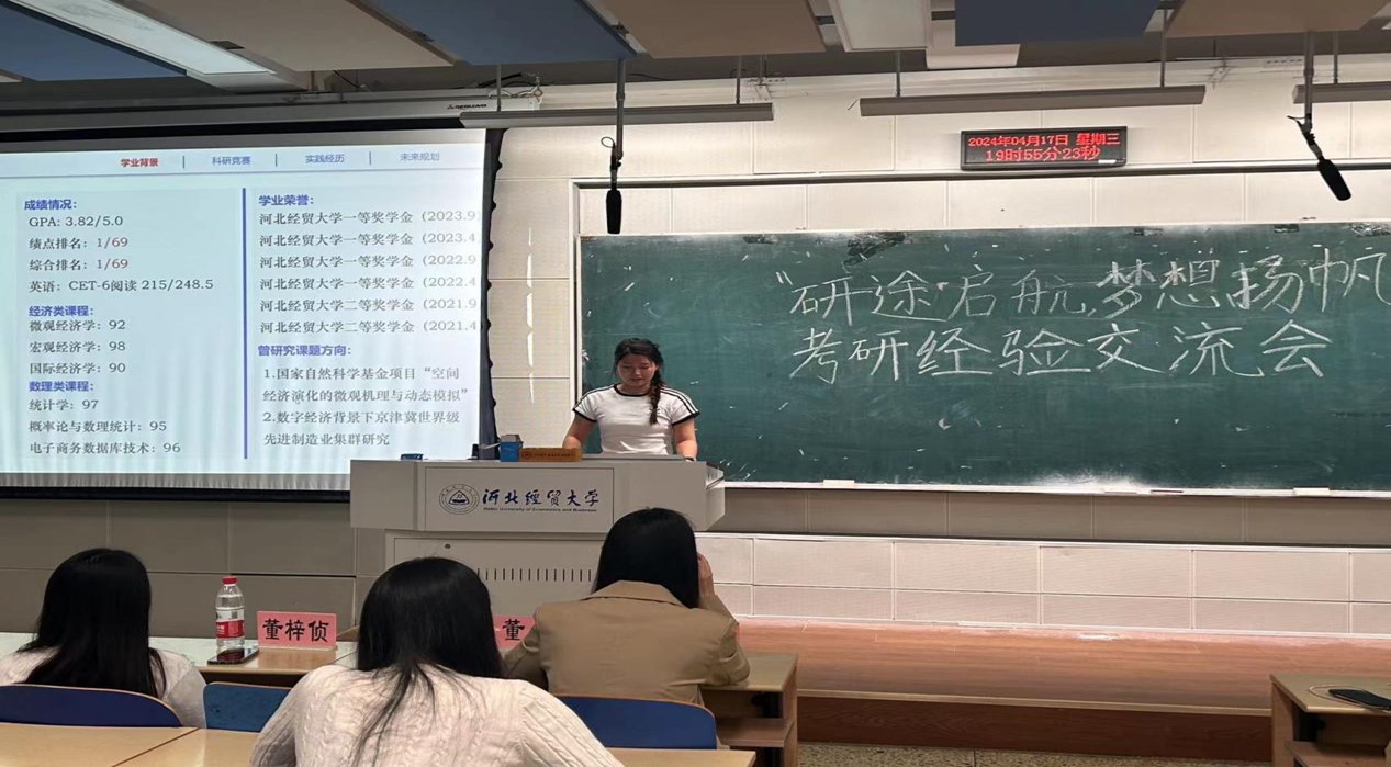 4月17日晚,太阳成城集团在北三教A101举办了以“研途启航,梦想扬帆”为主题的考研经验交流会。出席本次考研经验交流会的有赵思彤、张筱萌、董捷、董梓侦、张晨涵五位优秀学姐。本次考研经验交流会由宋华志、张冰燕主持。