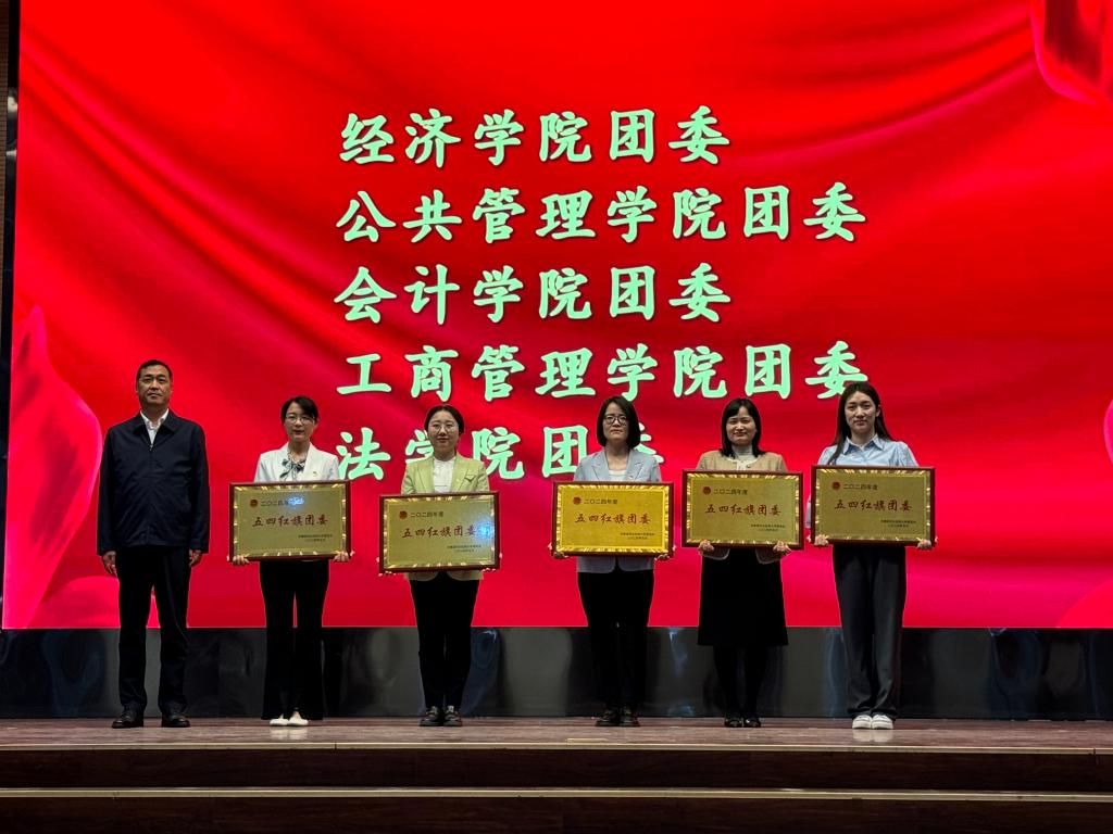 2022级经济学2班团支书巩思男(左3)上台领奖