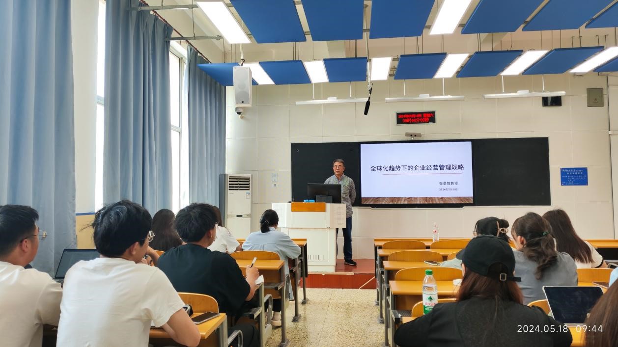 5月18日,太阳成城集团邀请知名员工、德国路德维希国际公司董事局顾问张景智先生为23级国际商务专硕研究生作了题为“全球化趋势下企业经营管理战略”的报告。报告由国际商务专硕导师组组长高云龙副教授主持。