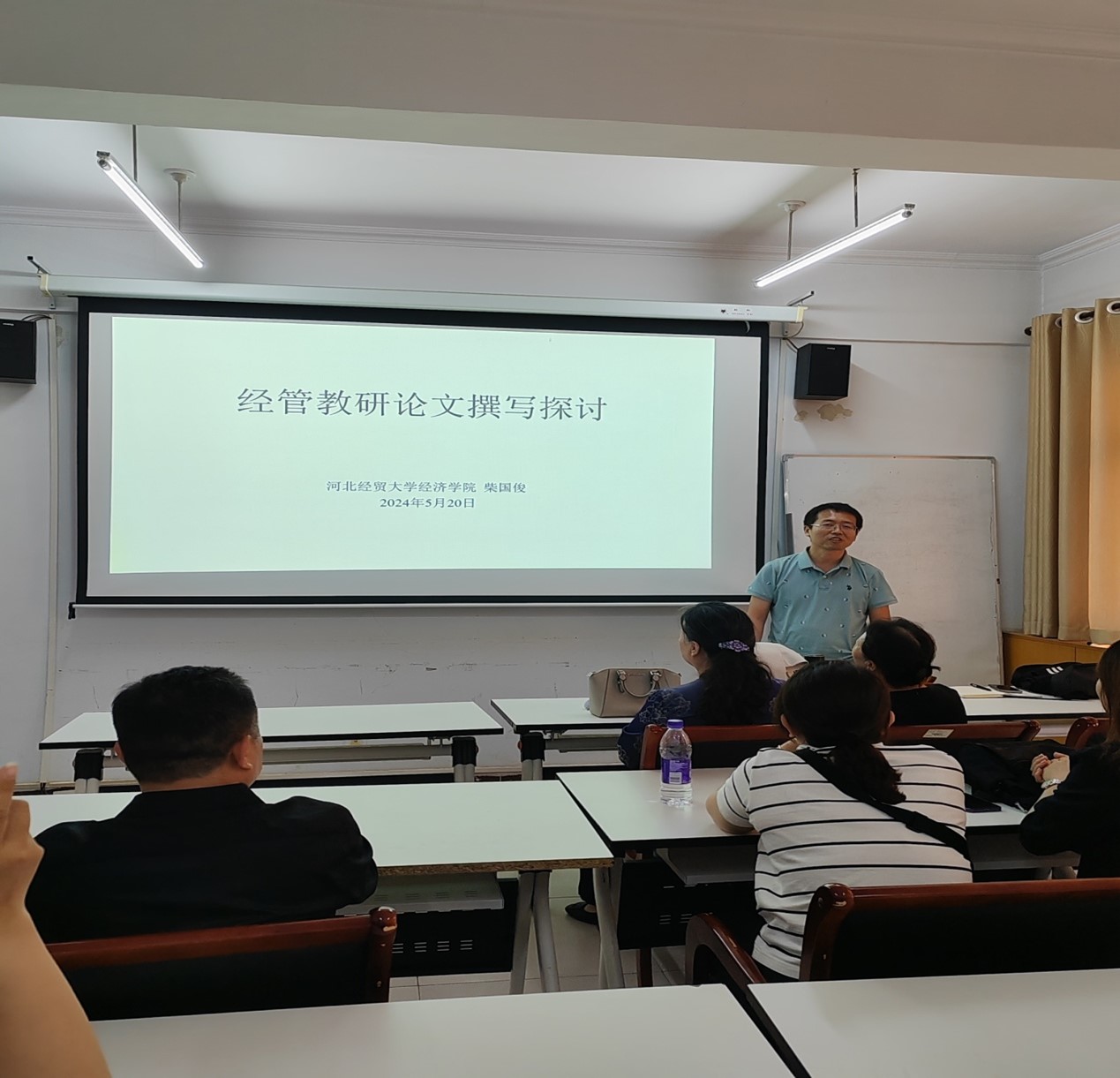 2024年5月20日下午,太阳成城集团在公司中会议室举办了题为“经管教研论文撰写探讨”的教学沙龙活动。沙龙活动由贸易经济系柴国俊老师主讲,教学副经理单海鹏主持,全院三十余名教师参加。