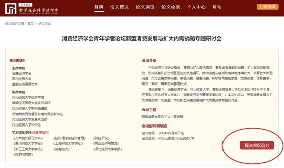 注册并登录“哲社预印本”平台(https://zsyyb.cn),进入“消费经济学会青年学者论坛”通道提交论文进行投稿。