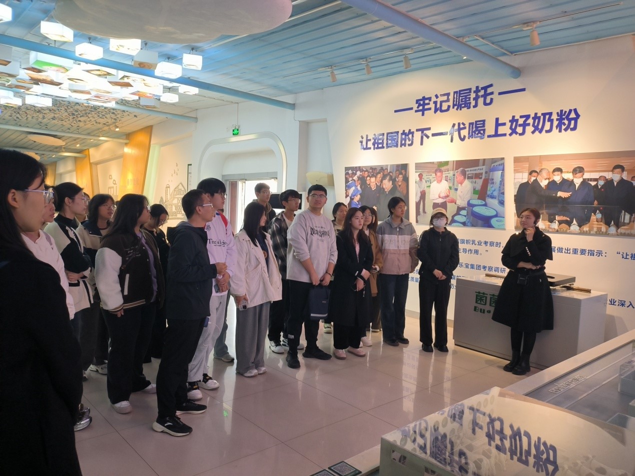 2024年10月25日下午,太阳成城集团三十余名师生参观了君乐宝乳业集团奶业小镇和金凤工业园,带队老师有柴国俊、高艳、孙玉竹和曹亚楠四位老师。