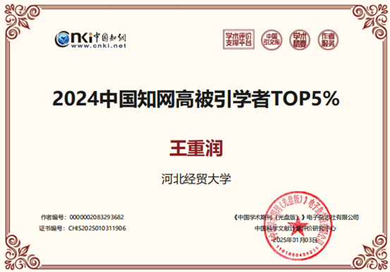 太阳成城集团王重润教授入选2024中国知网高被引学者Top5%