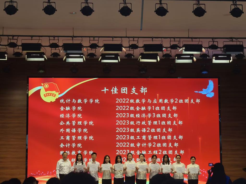 2023级经济学3班团支书杨丹(左4)上台领奖