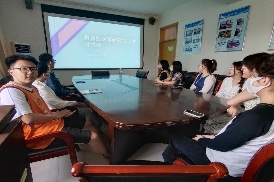 2022年4月23日下午,商公司国际贸易学专业于第三办公楼西会议室举办了“商学纵横”之国际贸易学研究生论坛,2021级硕士研究生进行学术汇报,2020级硕士研究生到场学习并给出指导建议。