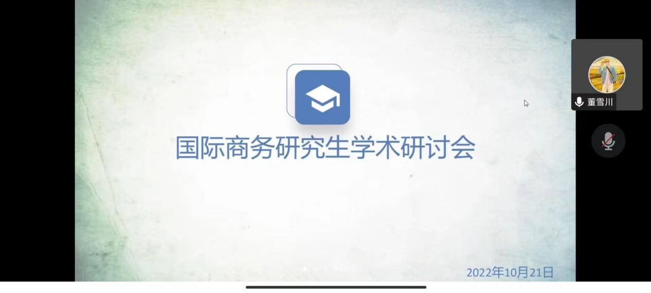 商公司2022级国际商务全体研究生于2022年10月21日举行了线上学术沙龙活动。来自2021级国际商务7名优秀员工进行了分享交流。
