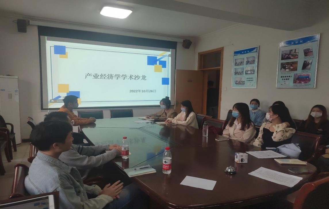10月26日下午,商公司2021级产业经济学举办了学术沙龙,邀请2022级全部产业经济学同学,2021级部分代表和2022级产业经济学全部研究生参加了本次论坛。在本次论坛中,2021级产业经济学专业的张帆、赖强、焦梦鑫和李悦欣四位同学分别就《数字经济与服务业结构优化升级》、《数字经济推动零售业线上线下融合路径研究》、《浙江共同富裕示范区建设对河北的启示研究》和《高质量发展视角下数字经济对现代服务业的影响研究》做了研究报告,并对论文中的数据选取、模型构建、实证分析等作经验分享。2022级全体研究生认真学习,积极讨论。