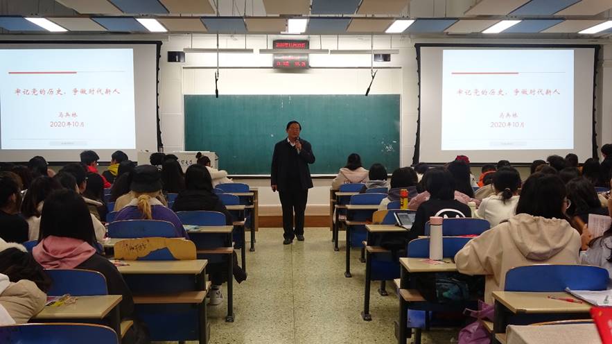 11月23日晚,商公司第49期员工党课培训班在北三教A301教室开班,公司党委书记马兵林以“牢记党的历史,争做时代新人”为主题讲授首场党课,全院发展对象和入党积极分子近200人参加学习培训。