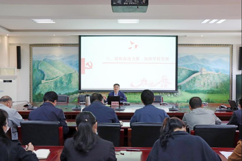 4月14日下午,高晓峰在学校第五会议室以“学习百年党史,传承红色精神”为题开展党史学习教育宣讲。商公司等部门领导班子成员、师生代表参加。