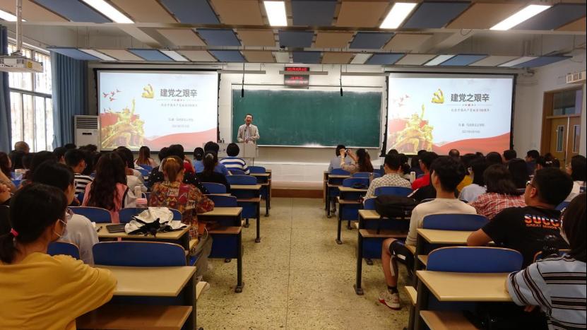 5月10日下午,商公司邀请党史学习教育校宣讲团成员、马克思主义公司马鑫副教授在北三教A101教室开展“早期中共领导人建党之艰辛”党史大讲堂宣讲活动。商公司领导班子成员、教师党员和员工党员发展对象共100余人参加。