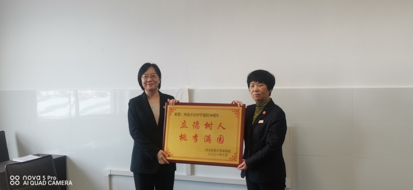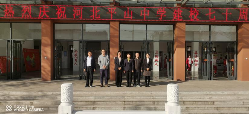 10月15日下午,商公司员工工作办公室主任李珊珊、团委书记路荣和员工第一党支部书记刘哲君赴河北平山中学,祝贺河北平山中学建校70周年,深化党建合作平台建设。
