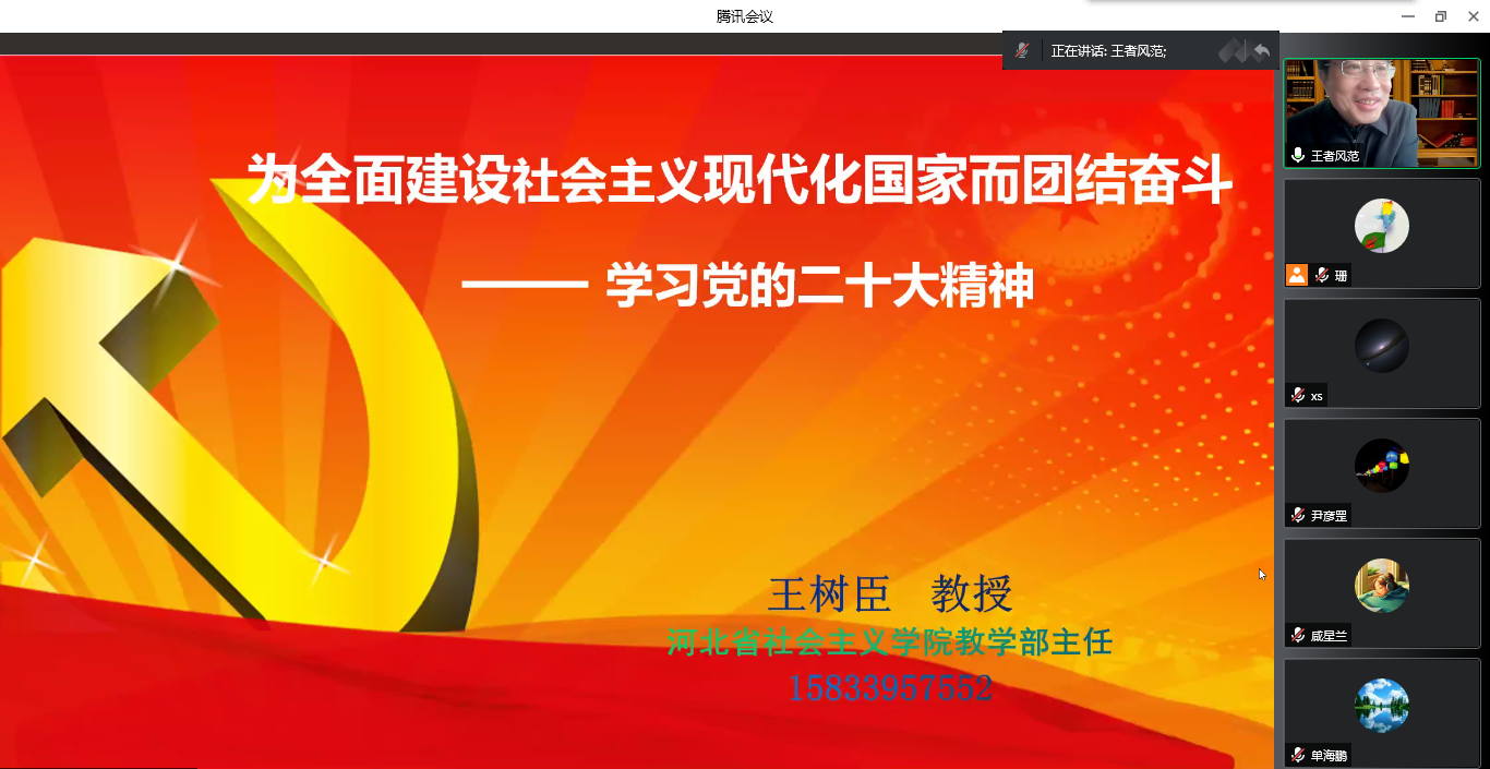 12月6日,商公司邀请河北省社会主义公司王树臣教授通过线上作党的二十大精神宣讲,公司党委书记马兵林主持,全体教职工线上参会学习。