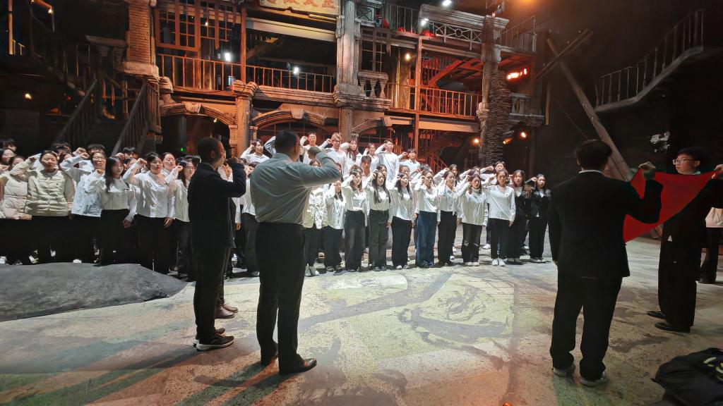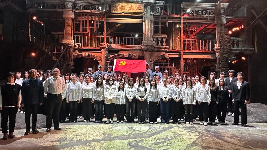 随后,党员师生们观看了《石家庄·1947》沉浸式演出,身临其境地体验1947年解放前夕那段燃烧的红色岁月,去亲历地下党员为解放石家庄战役深入虎穴、不畏牺牲地与敌残酷斗争,去感受我党各级情报人员赤诚的梦想与热血。观看中不少师生党员被地下党员受严刑拷打却仍毫不退缩、解放军战士一批批倒下等演出情景所感染。