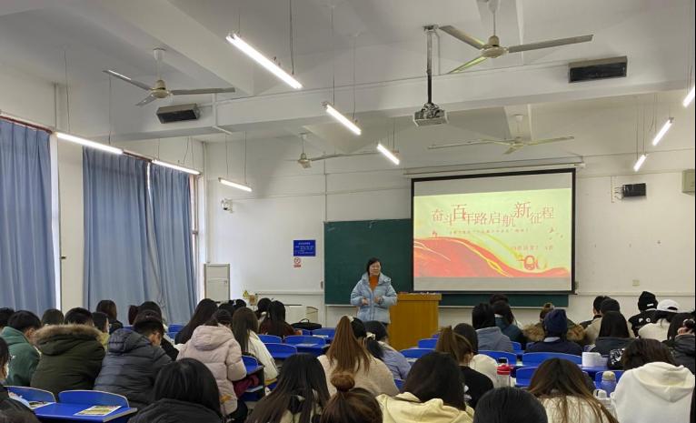 班会最后,李珊珊老师号召同学们要积极响应党中央号召,更加紧密地团结在以习近平同志为核心的党中央周围,埋头苦干、勇毅前行,以昂扬的姿态、饱满的热情、理性的行动,为全面建设社会主义现代化国家、夺取新时代中国特色社会主义伟大胜利、实现中华民族伟大复兴的中国梦不懈奋斗。