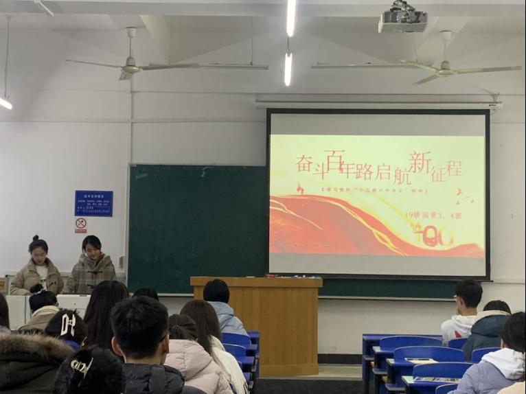 商公司19级国贸三、四班开展“奋斗百年路,启航新征程”---学习十九届六中全会精神主题班会