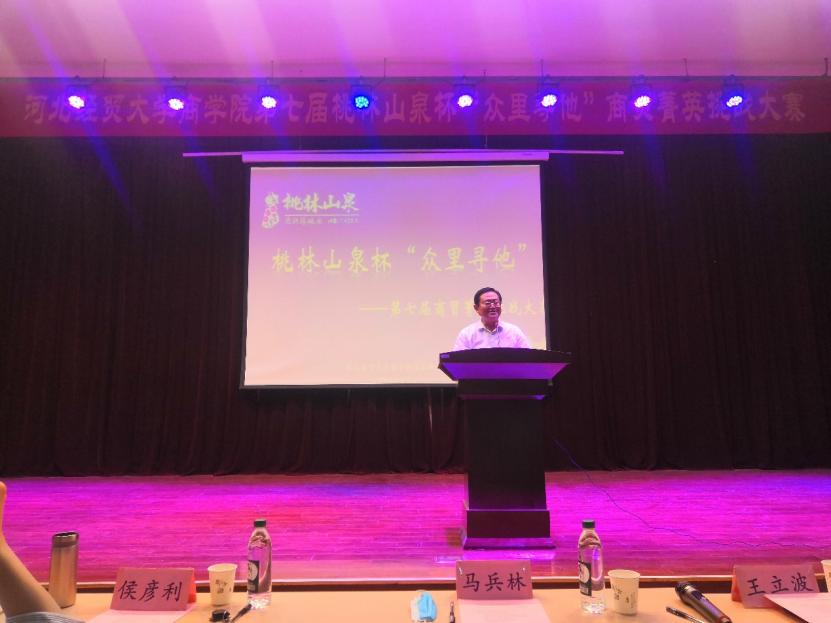 首先,商公司党委书记马兵林发表讲话,他指出商贸菁英比赛是商公司传统的团青品牌活动,对秦皇岛桃林山泉水有限公司对此次活动的大力支持表示衷心感谢;他希望同学们能够苦学专业本领,学好专业知识,珍惜青春年华,坚定理想信念,希望参赛选手发挥自己的专业特长,发挥专业本领,以积极饱满的态度投入到比赛当中去;并预祝比赛取得圆满成功。其后,秦皇岛桃林山泉水有限公司董事长王立波发表讲话,作为经贸员工,他讲述了自己在经贸的学习经历,表达了对经贸的深厚情感,并与同学们分享了自己的创业经历,分享自身的经验与可借鉴之处。他表示在现在的互联网时代,只有不断地创新、不断地发掘机会,才有成功的可能,希望大家秉持着创新理念和激情,把激情带到社会中去、带到生命中来。