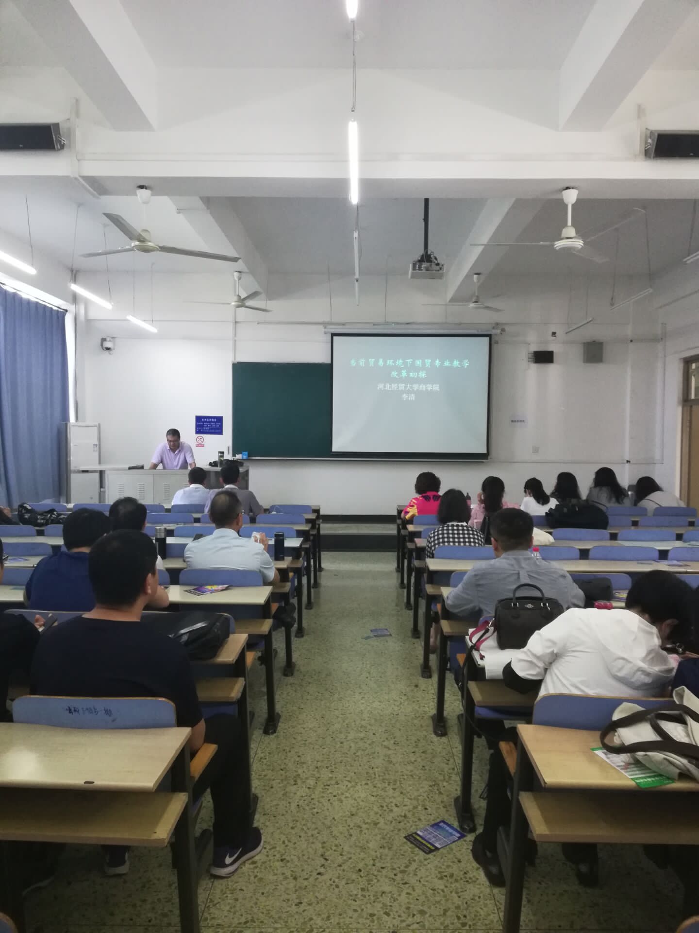 2019年9月23日下午,商公司于北三教B302举办以“当前贸易环境下国贸专业教学改革初探”为主题的教学沙龙活动,本次活动由副经理马书刚主持,约70名教师参加。