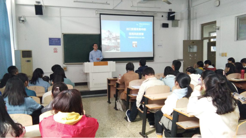 10月28日,中国出口信用保险公司河北分公司理赔追偿处部门经理吴磊应商公司邀请,于第三教学楼B305作题为“出口贸易实务中的信用风险管理”的学术报告。商公司80名师生参加。报告由国际贸易系孟萍莉主任主持。