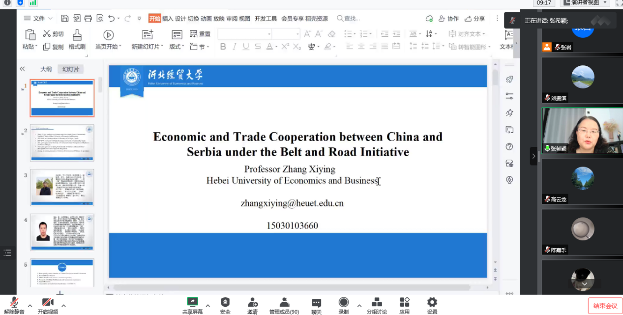 8月31日,太阳成集团官方网站国际交流中心副主任张希颖教授应商公司邀请,于线上作了题为“‘一带一路’倡议下的中国-塞尔维亚经贸合作”的学术报告。报告由刘振滨副经理主持,公司九十余名师生参加。