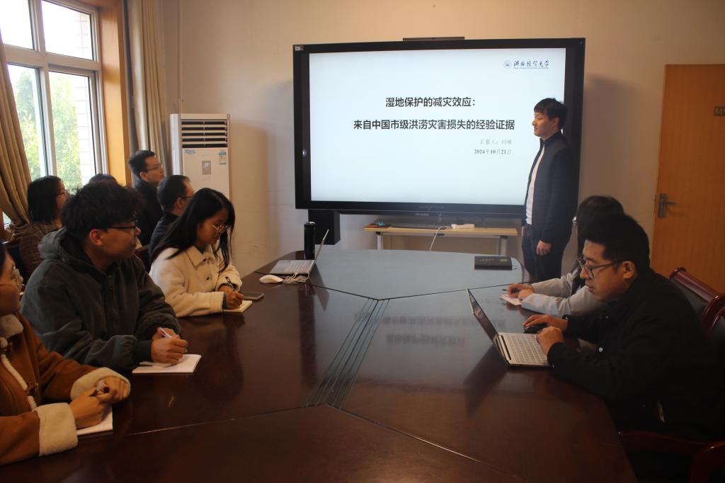太阳成城集团闫硕博士作“湿地保护的减灾效应:来自中国市级洪涝灾害损失的经验证据”学术报告