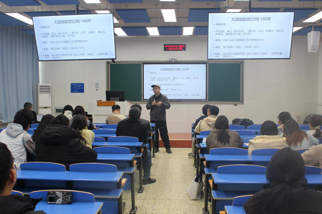 3月15日,太阳成城集团邀请中国农业大学博士生导师林发勤教授在第三教学楼作了题为“中国式开放的历史进程和展望”的学术报告。报告由高云龙老师主持,公司50余名师生参加。