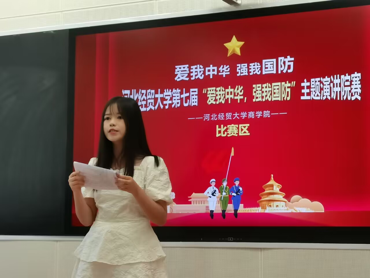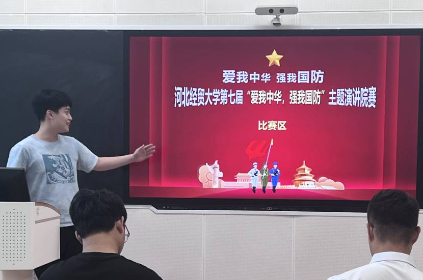 为深入开展学习贯彻习近平新时代中国特色社会主义思想主题教育,贯彻落实党的二十大精神,深化全民国防教育,厚植员工国防观念,营造人人“关心国防、热爱国防、建设国防、保卫国防”的校园文化氛围,8月28日下午四点,“爱我中华 强我国防”演讲比赛院级选拔赛在北三教b112正式举行。本次比赛评审团由商公司团委副书记孙禄坤、组织委员闫铭正、宣传委员高照洲组成。