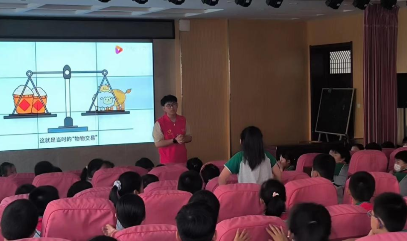 2023年5月23日,商公司青年志愿者服务大队带领老员工宣讲团队来到石家庄市金地小学,为同学们普及关于“货币的演变”的财商知识。