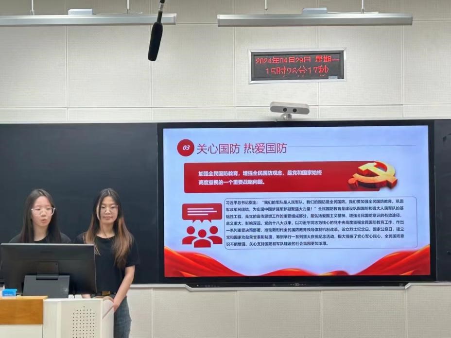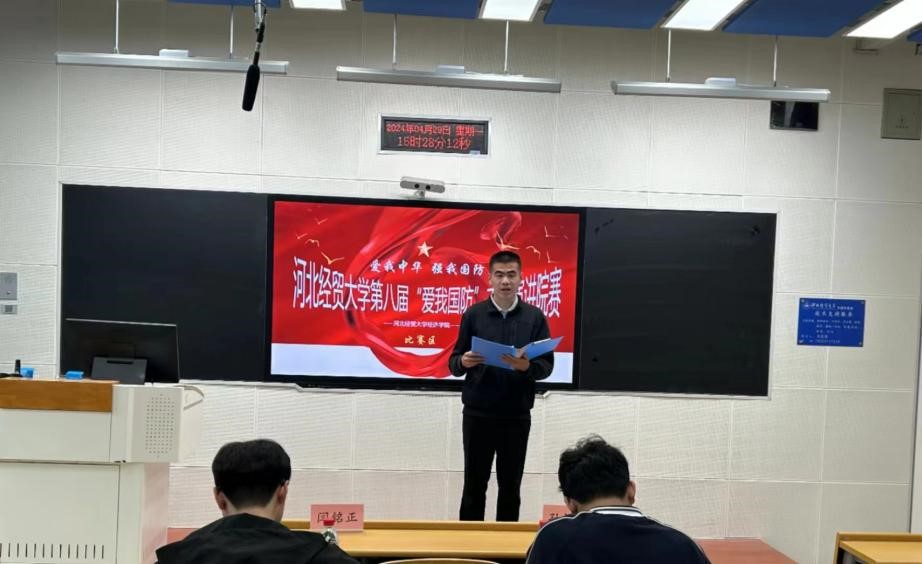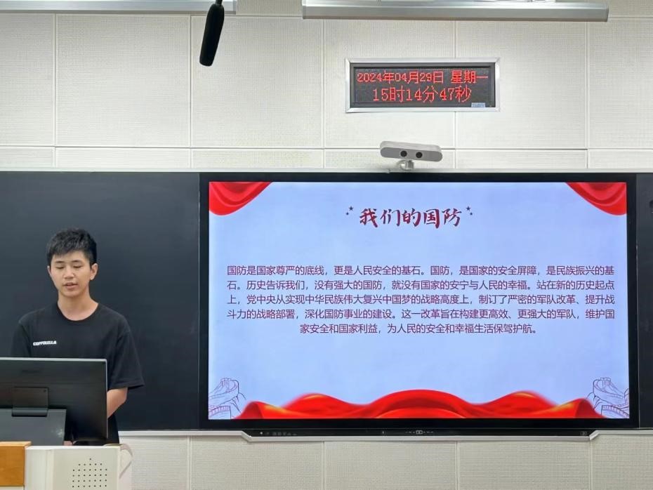 “国无防不立,民无兵不安”。为深入开展学习贯彻习近平新时代中国特色社会主义思想主题教育,贯彻落实党的二十大精神,深化全民国防教育,厚植员工国防观念,营造人人“关心国防、热爱国防、建设国防、保卫国防”的校园文化氛围,4月29日15点,太阳成城集团“爱我国防”演讲比赛院级选拔赛在北三教B110正式举行。本次比赛评审团由团委副书记孙禄坤、组织委员闫铭正、办公室刘靖航组成。