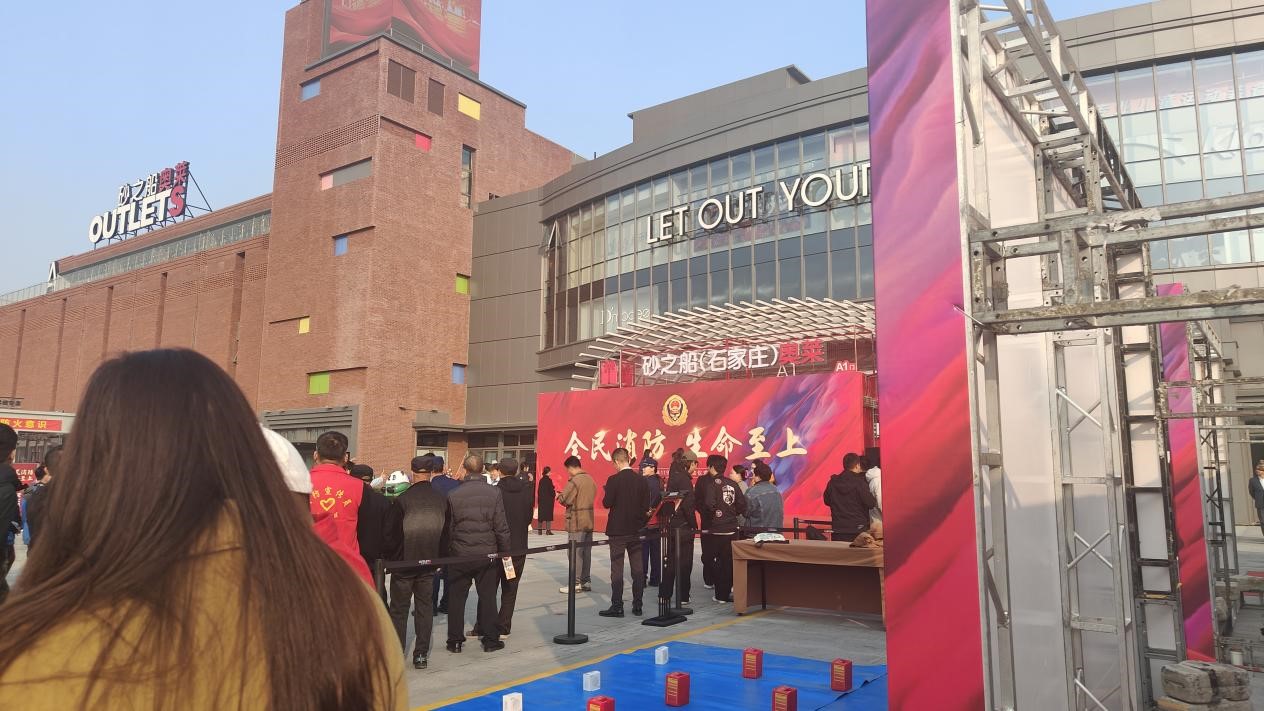 启动仪式在正定砂之船·奥特莱斯隆重举行,现场气氛热烈,人声鼎沸。公司青年志愿者服务大队的成员们身着统一的志愿者服装,精神抖擞地参与到颁奖仪式、表演、互动游戏等各个环节中。志愿者们通过现场学习灭火工具和观摩消防器械,了解了基本的消防知识,也很好的带动了现场氛围,吸引了很多人驻足观看。