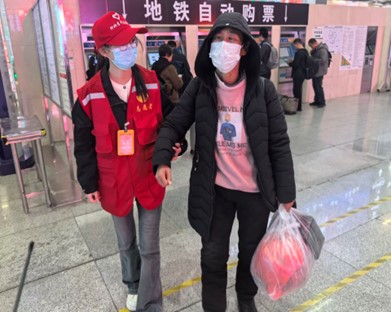 在人潮涌动的出站口,志愿者们就像精准的导航仪。他们清晰地指引着旅客前往公交站、地铁站或出租车乘车点,避免了人流的交叉与混乱。对于那些独自出行的老人、怀抱幼儿的母亲、行动不便的残疾人,志愿者们更是关怀备至,主动搀扶、帮忙提行李,给予无微不至的照顾,让这些特殊旅客在旅途中感受到了别样的温暖与心。