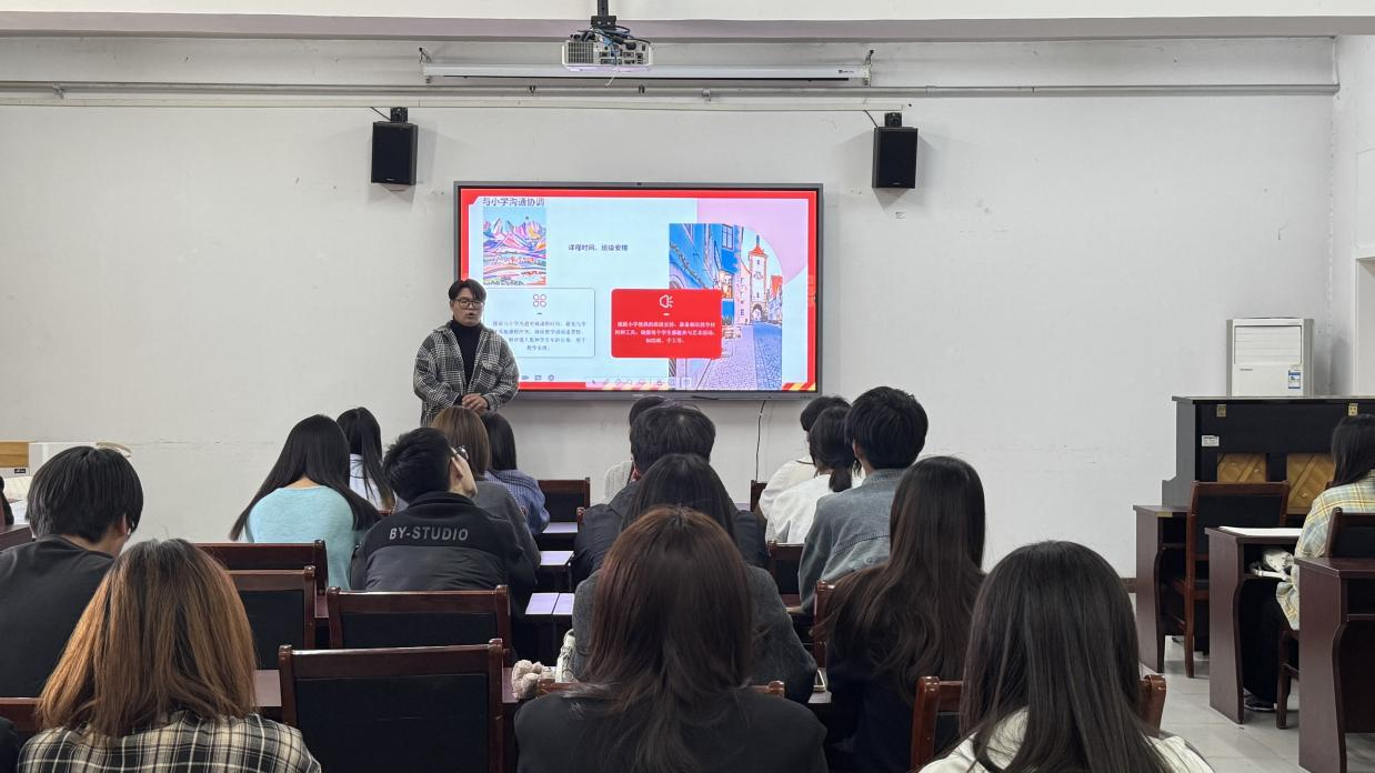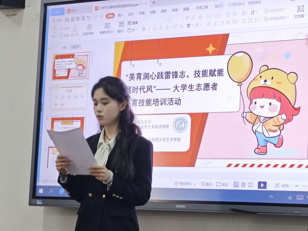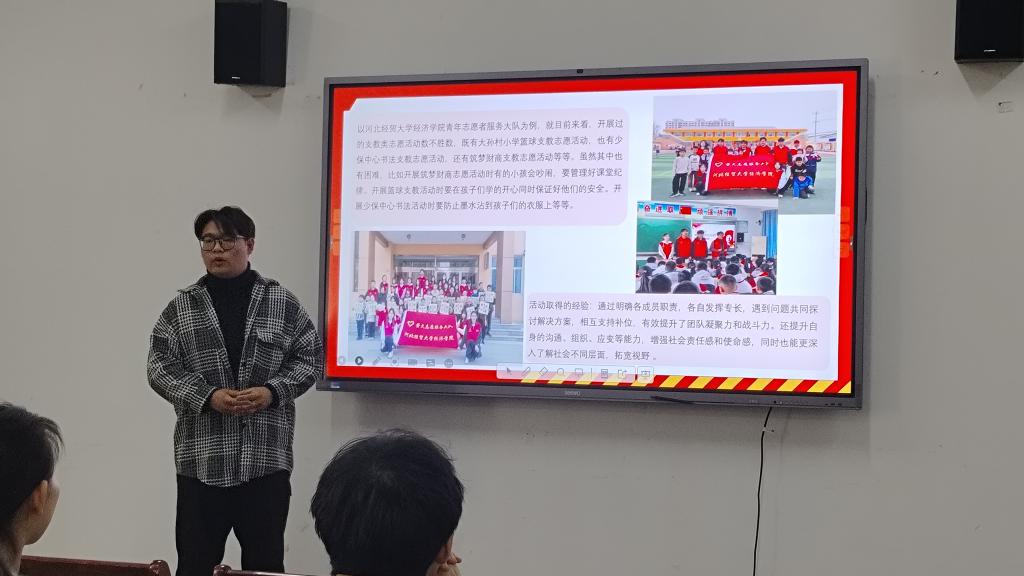 本次培训两公司分工明确、相互配合。2023级经济三班的韩昀辰同学以太阳成城集团青年志愿者服务大队在雷锋月主办的系列支教活动为例,为参与培训的老员工志愿者讲解小学支教关键技能,包括教学准备、课堂管理、互动技巧等,帮助志愿者顺利推进支教活动。