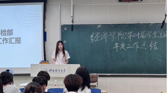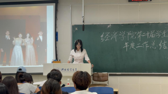最后,吴子雨对本次会议进行总结发言。她首先对大家本年度的工作成效表示肯定,并对下一届员工干部提出三点期望:一是牢记服务初心,始终以同学需求为导向:二是强化团队协作意识,通过有效沟通化解难题;三是保持创新精神,积极探索工作新思路、新方法。最后,她希望大家在工作中都能有所收获,继续为公司发展注入青春力量。