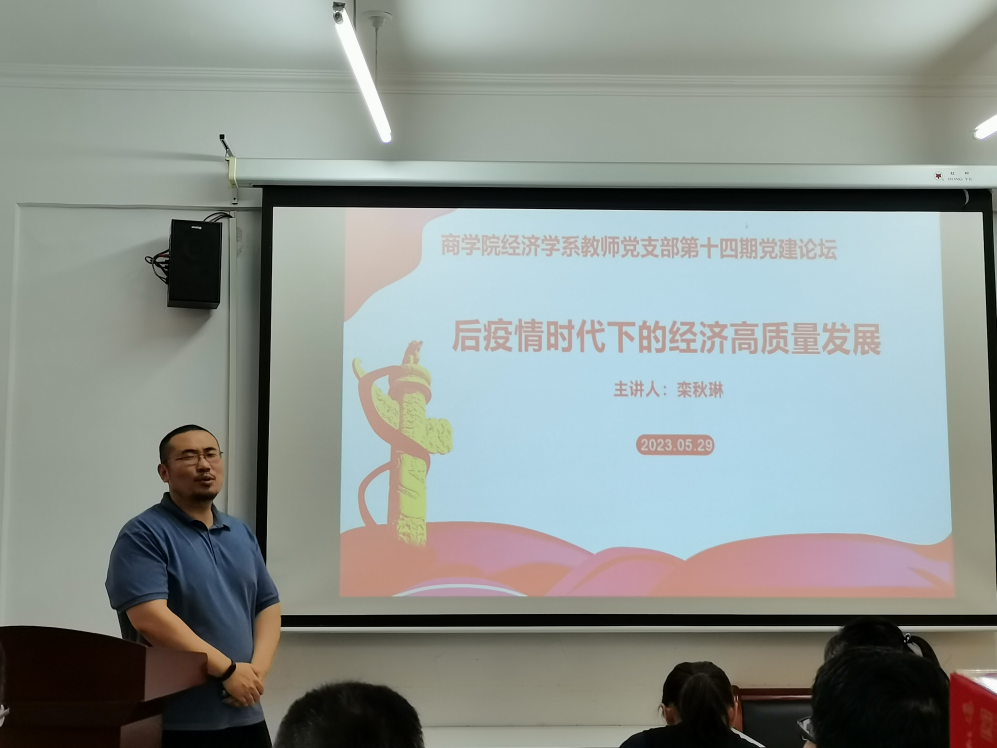 王冀平、咸星兰、赵培红三位党员进行了互动式发言。王冀平就后疫情时代我国经济发展的特殊性和疫情对经济发展的契机发表了意见;咸星兰结合党的二十大报告,从区域经济学的角度分析了我国经济高质量发展的路径,使大家对理论问题的认识更加深刻;赵培红站在优化营商环境的角度,强调了塑造企业家精神对于我省区域经济高质量发展的重要性。